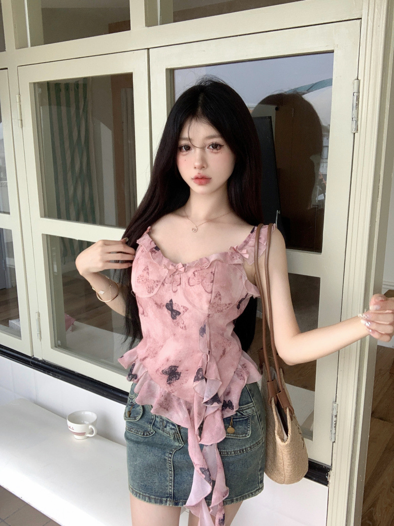 Korean Pure Desire Retro Camisole Top designed with a vintage-inspired silhouette and soft feminine detailing.